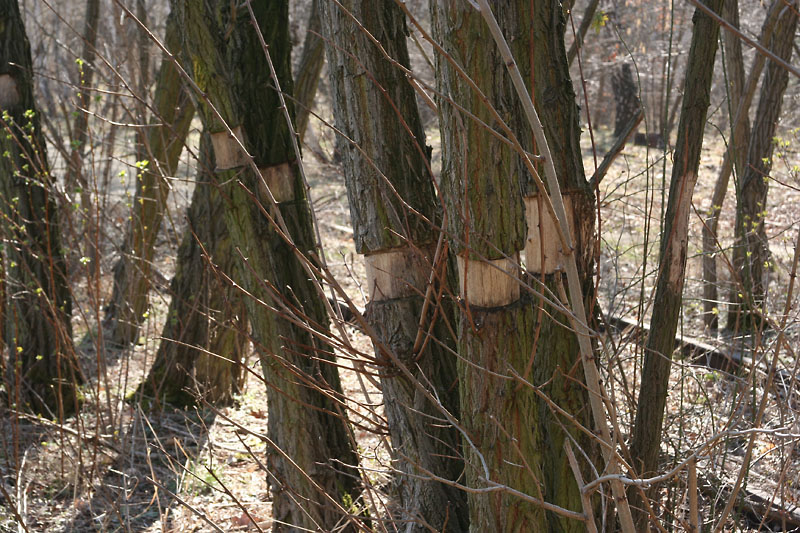 Gewundert habe ich mich über diese Bäume. Was hat das denn für einen Sinn, so ein Stück Borke rauszuschneiden?